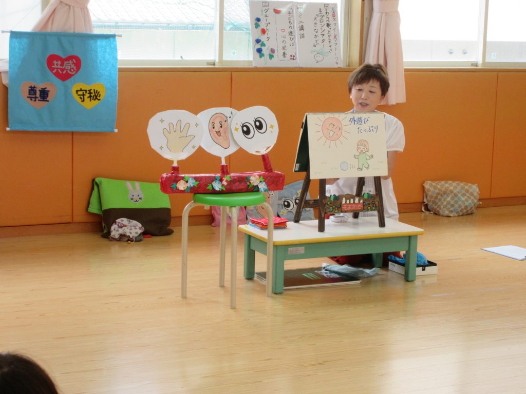 スマイルママトーク(大洲児童館) 2024 7/25 イベント 7月22日(月) 大洲児童館の子育て広場(スマイルママトーク)に参加しました。 エプロンシアター「大きなかぶ」、講話「子供の遊びは心の栄養」、グループトーク「今、はまっていること、ストレス解消法など」で楽しく子育てについて考えました。 イベント そよ風通信No.172 R6年7月号 そよ風事務所の開所日について