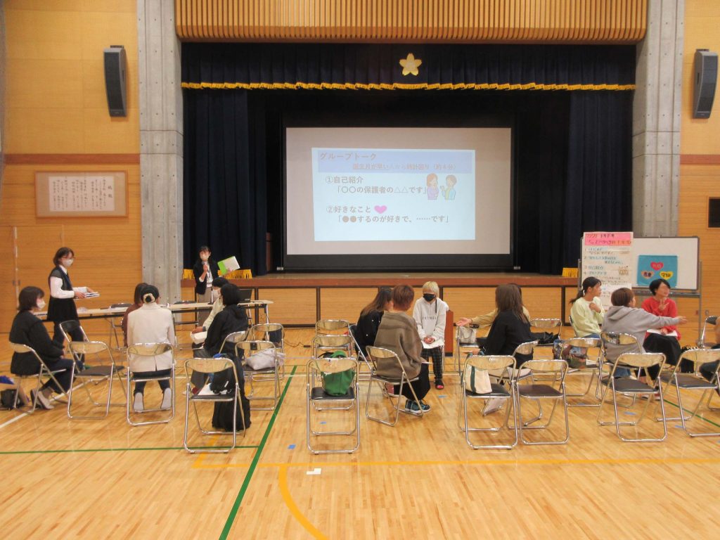 就学時健診にあわせて、子育て学習会(ミニ講話・グループワーク)を開催しました。ミニ講話では、子供のSOSサインをキャッチした時の効果的な言葉かけの方法、グループワークでは、子育てプチトーク「入学に向けて気になっていること、先輩お母さんに聞いてみたいこと」で盛り上がりました。