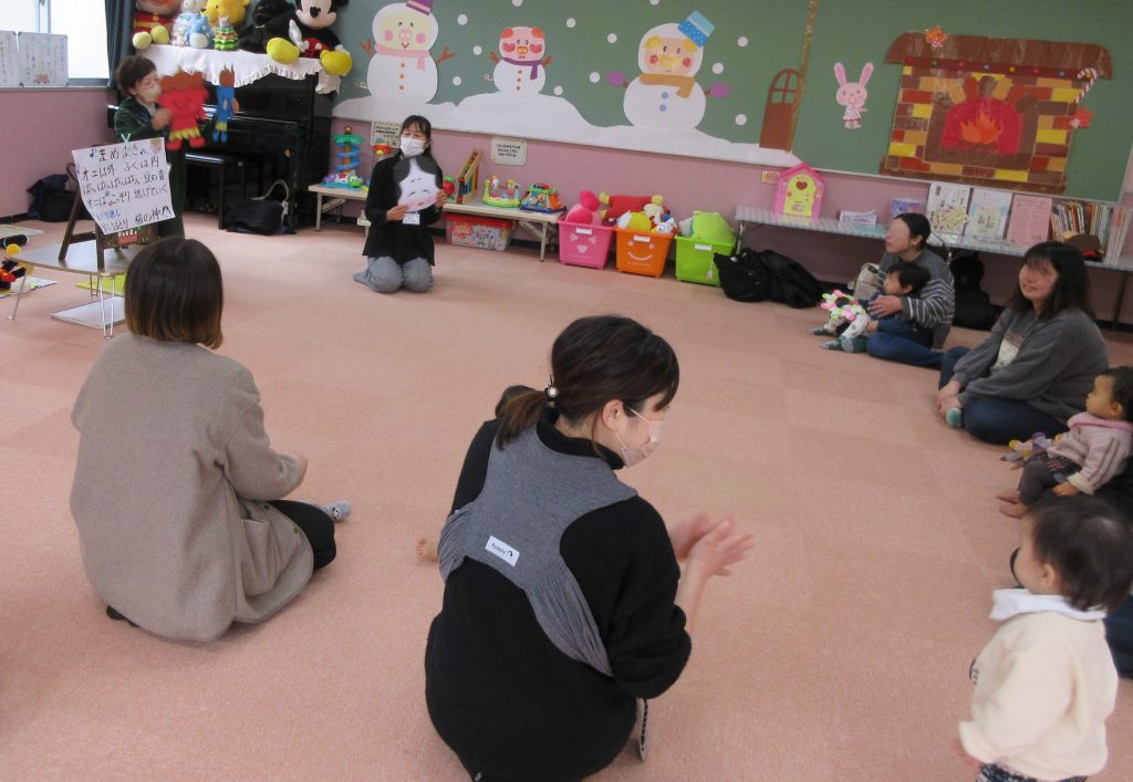 2月3日(月)徳森児童センターの子育て広場(森のそよ風)に参加しました。絵本「もこ もこもこ」の読み聞かせ、ミニ講話「子育てQ&A:友達と同じものを欲しがる子どもについて」、グループトーク「雪の日の過ごし方」「わたしと習い事」を行いました...