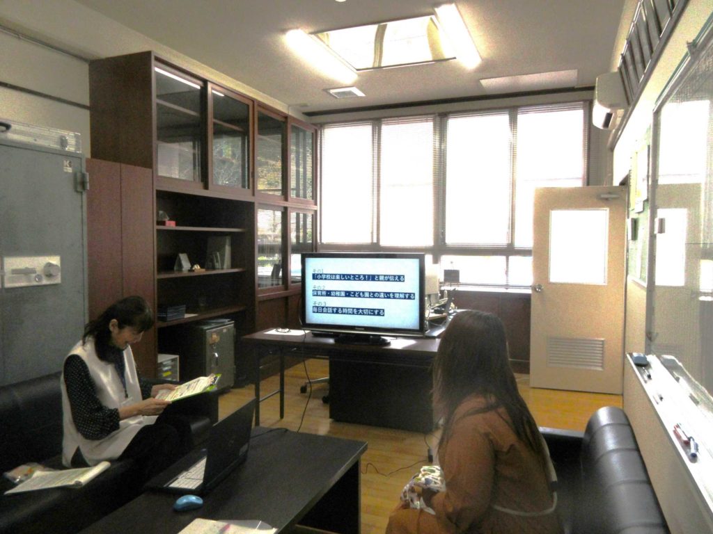 三善小学校の就学時健診にあわせて子育て学習会を行いました。来年度入学児童が1名ということで、校長室で行いました。保護者が1名なので、教頭先生にも参加してもらいました。 最後に子供のよいところを手紙に書いてもらいました。 -