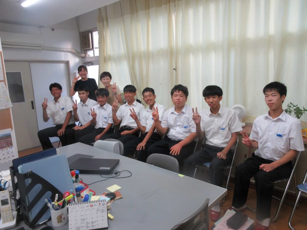大洲高校1年生8名が、そよ風事務所を訪問してくれました。1年生は、「大洲を探求し、地域の魅力を発信する」をテーマに研究をしているそうです。訪問してくれたグループは「よりよい教育」について研究しており、その一環として聞き取り調査学習に来てくれました。